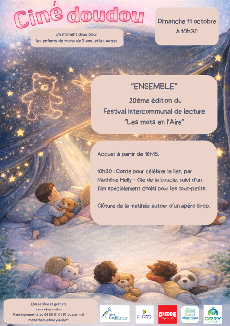 Comme chaque année, dans le cadre des Mots en l'Aire, le Cinédori et la médiathèque vous proposent le Ciné-Doudou, une séance de cinéma spécialement faite pour les tout-petits. CONTE & FILM D’ANIMATION — ENSEMBLE, TISSER DES LIENS DÈS LE PLUS JEUNE ÂGE À 10h30 : Un moment tout en douceur, spécialement imaginé pour les tout-petits de moins de 3 ans et plus… à vivre ensemble. Sur la scène du Cinédori, la conteuse professionnelle Mathilde Helly, de la Compagnie de la boucle, invite enfants et parents à se rassembler autour d’une histoire délicate, où les premiers liens se tissent et se partagent. Le conte sera suivi d’un court film d’animation, pour prolonger cette expérience sensible et collective, puis d’un apéro-sirop convivial, à savourer… toujours ensemble. Les papas, mamans, papis, mamies, tatas, nounous, grands frères et grandes sœurs sont acceptés avec plaisir. Séance offerte !!!